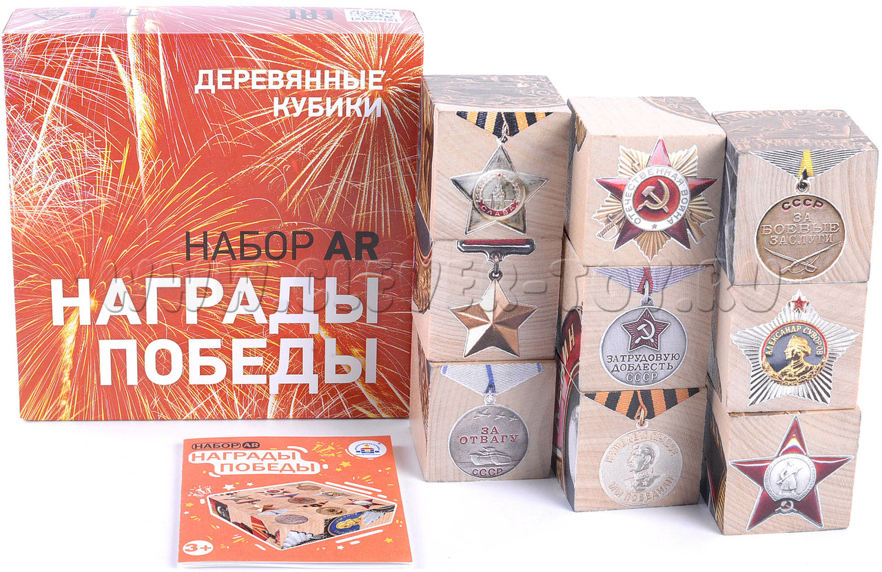Набор интерактивных деревянных кубиков «Награды Победы» созданы к 75-летию победы в Великой Отечественной Войне. На них изображены ордена и медали, которые в годы войны изготавливались на Краснокамском Гознаке.