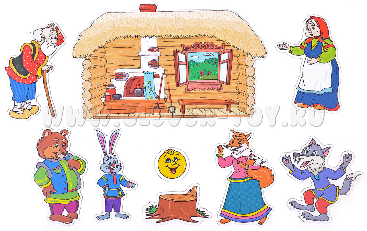 Размер карточек: 49 см х 29 см (изба), 4 см х 4 см (колобок).