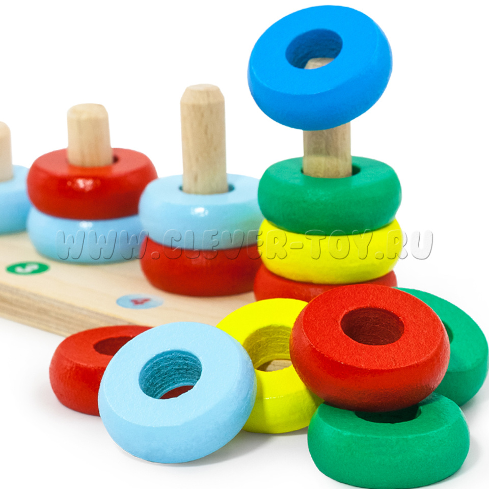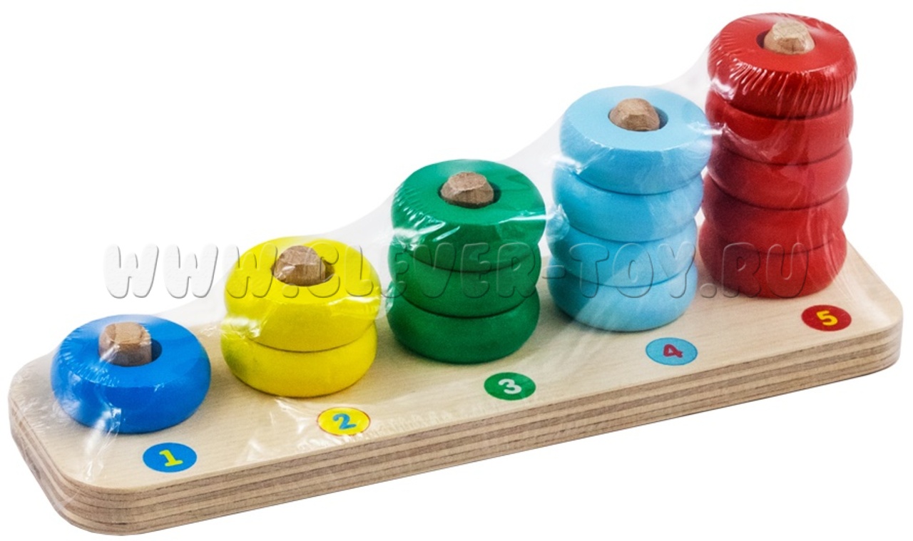 Пирамидка деревянная "Счеты" (15 колец, основание)