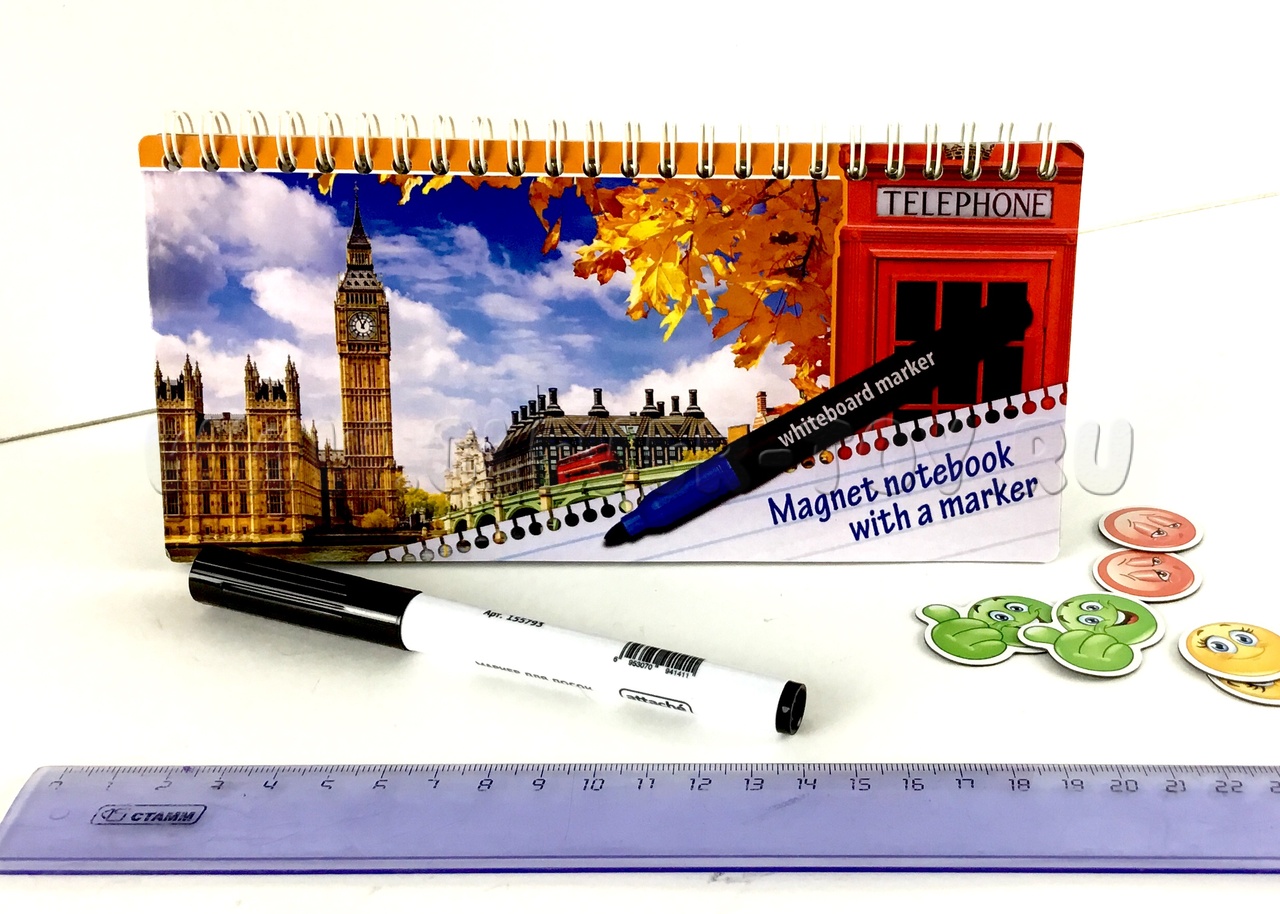 • блокнот (3 магнитно-маркерных страницы, размер: 21 см х 10 см)