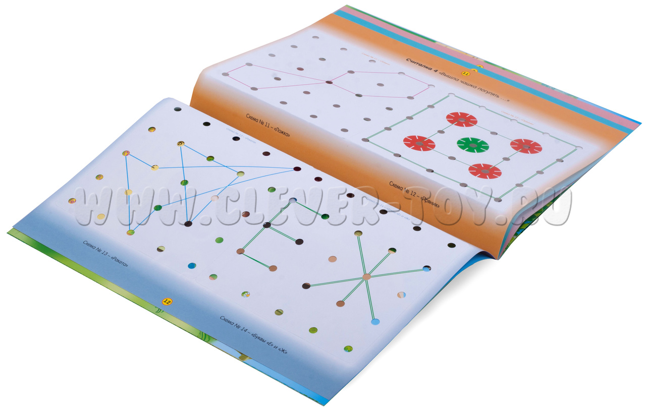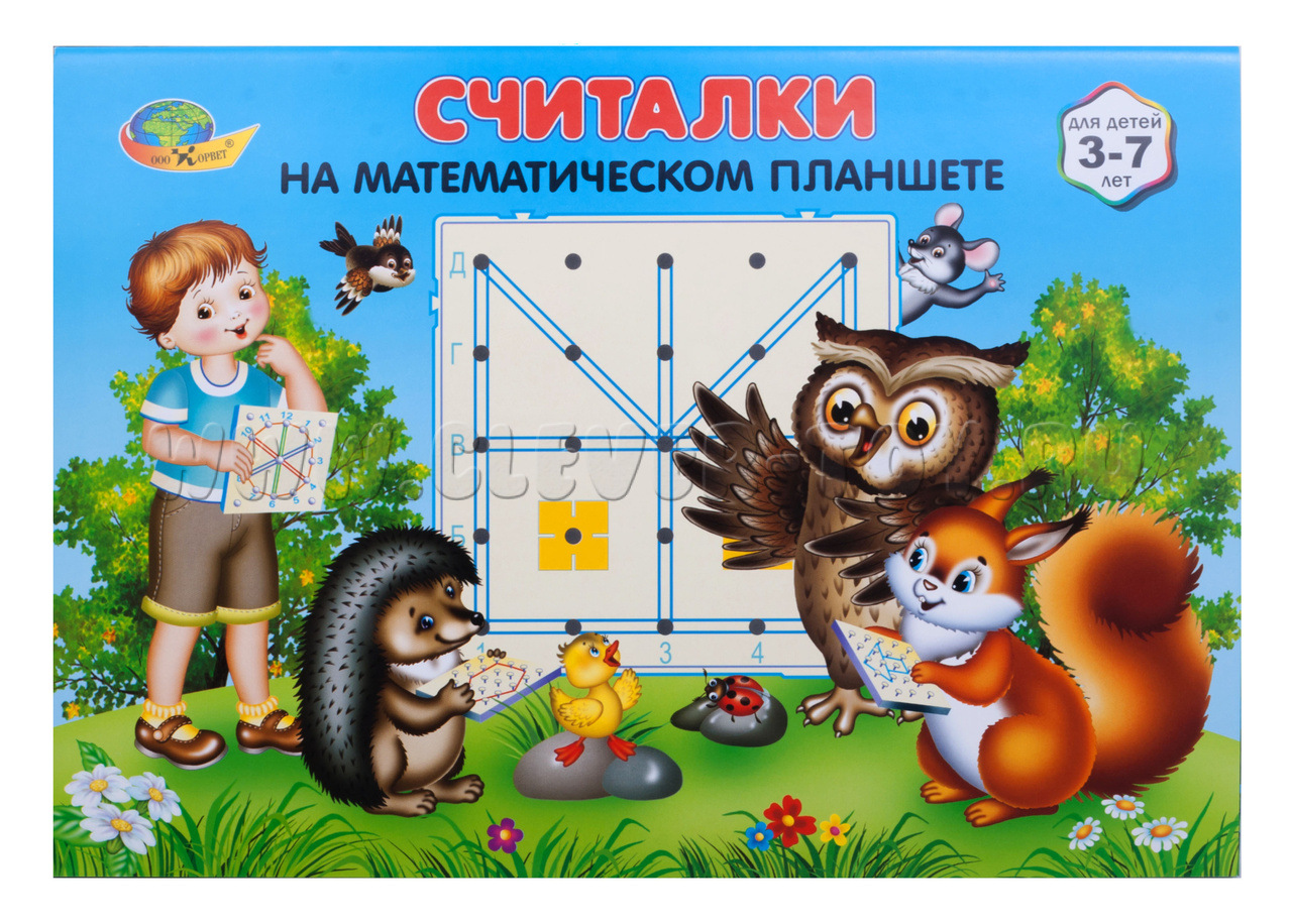 С помощью математического планшета и альбома ребёнок сможет иллюстрировать считалки, становясь «соавтором». Цветные резиночки и фигуры, входящие в набор математического планшета, а также творческие задания помогут в этом детям.