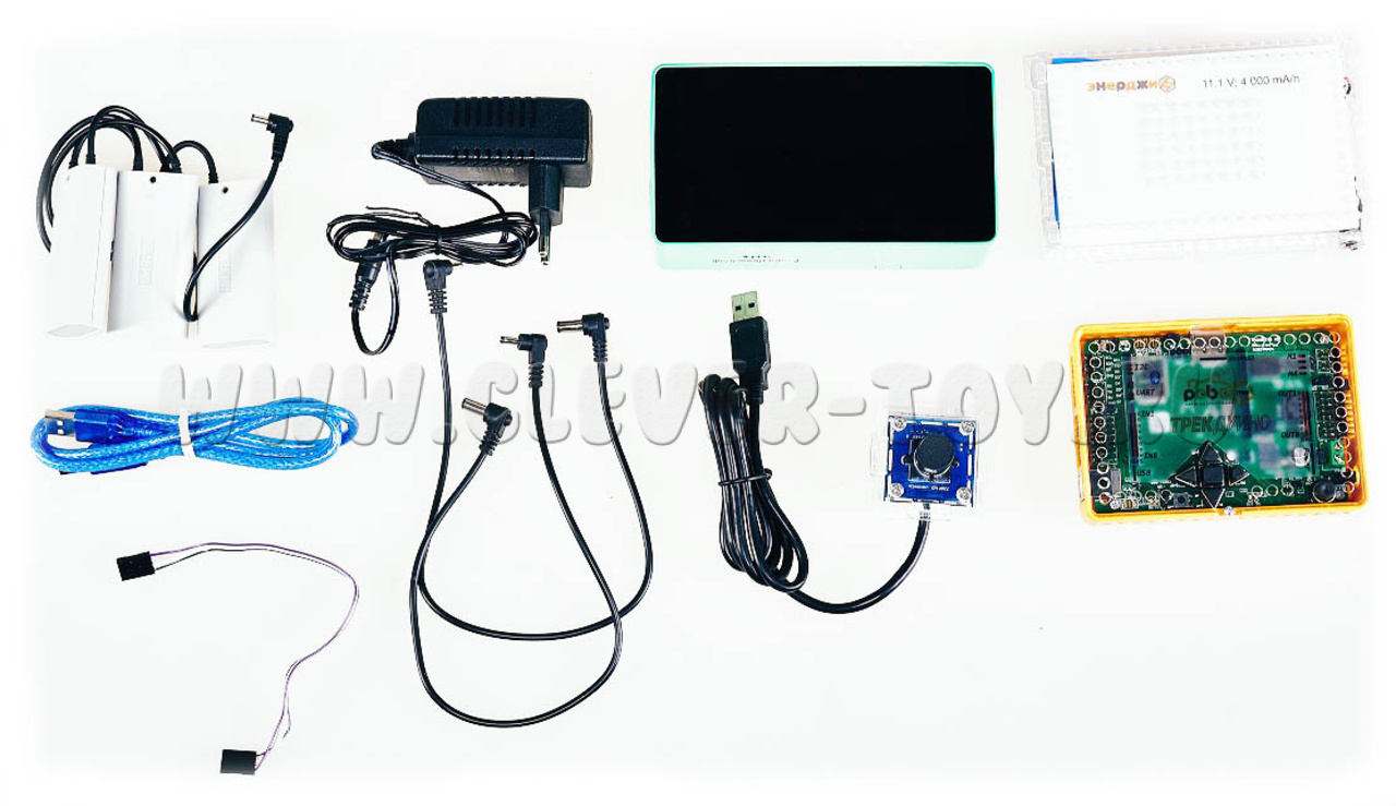 В состав комплекса входит: Модуль Артинтрек, способеный распозовать видео и адуио потоки (с помощью камеры и микрафона входящих в комплект) врежиме реального времени; контроллер ТРЕКДУИНО; Аудиотрек, позволяющий воспроизводить различные МР3 файлы. Модуль Артинтрек может использоваться для изучения основ искусственного интеллекта и компьютерного зрения. Распознавание происходит внутренними средствами модуля и не требует подключения к сети Интернет.