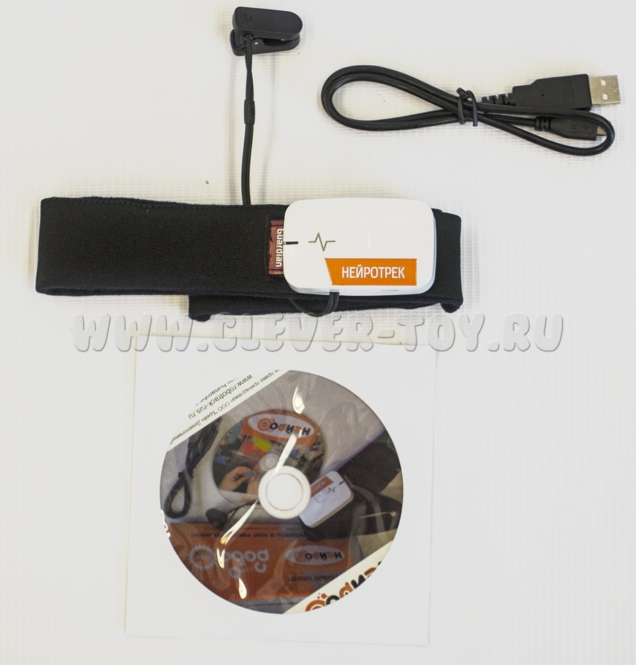 Ресурсный набор для детских конструкторов по образовательной робототехнике «Роботрек». Нейрообруч снимет показания электроэнцефалографического (ЭЭГ) сигнала от головного мозга с помощью трех датчиков, касающихся лба, затем передает данные на компьютер по беспроводному каналу Bluetooth.