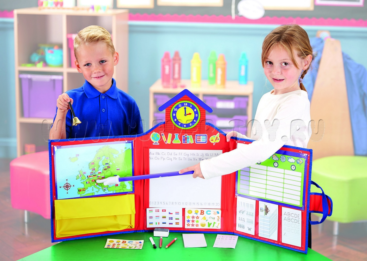 Игровой набор "Школа" позволяет подготовить детей к школе (знакомит с основами географии, математики, письма).