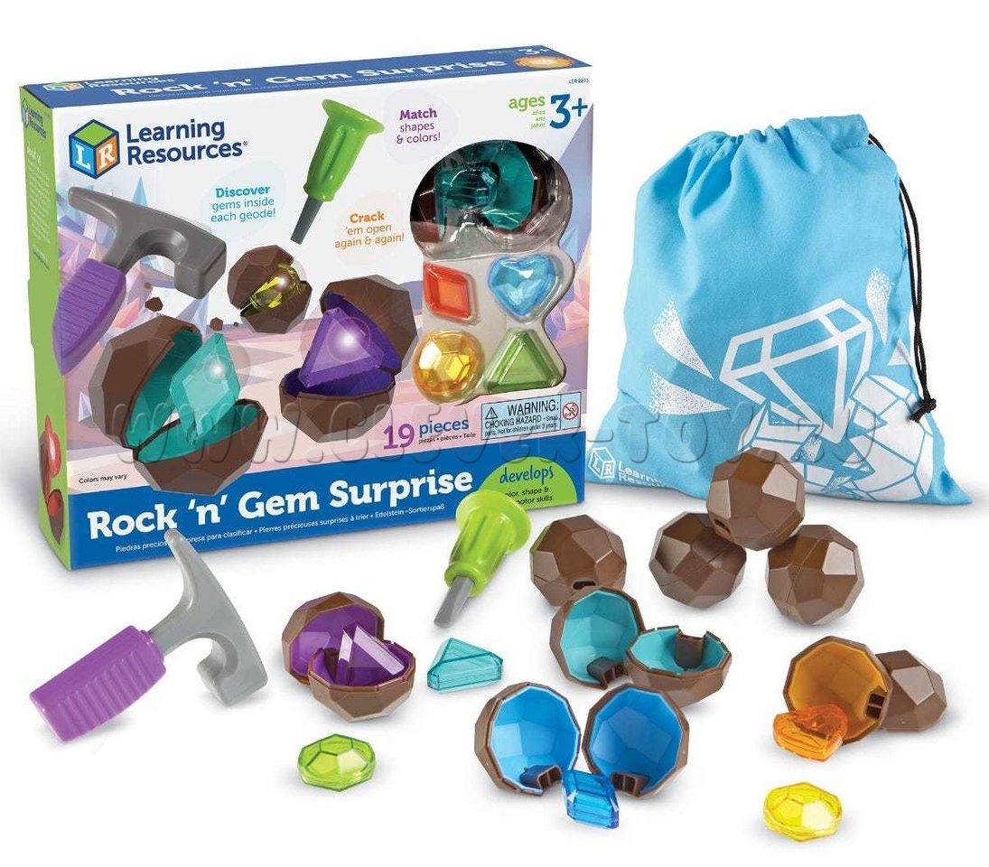 Элементы набора – инструменты геолога и добываемые им драгоценные камни (в которые можно заглянуть внутрь) из прочного, мягкого пластика. Идеально подходят для творческих игр.