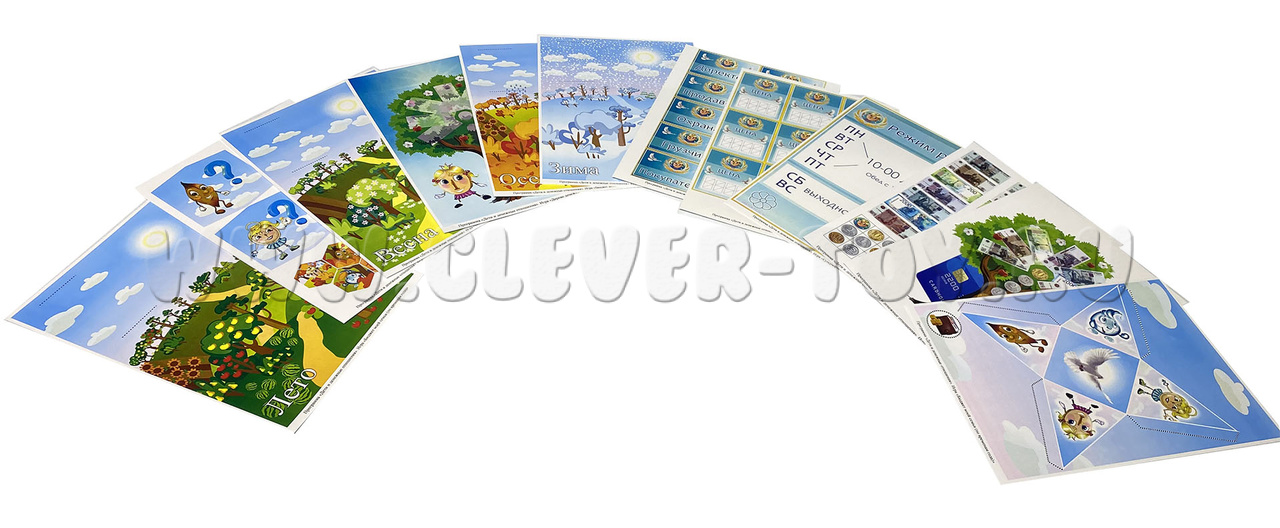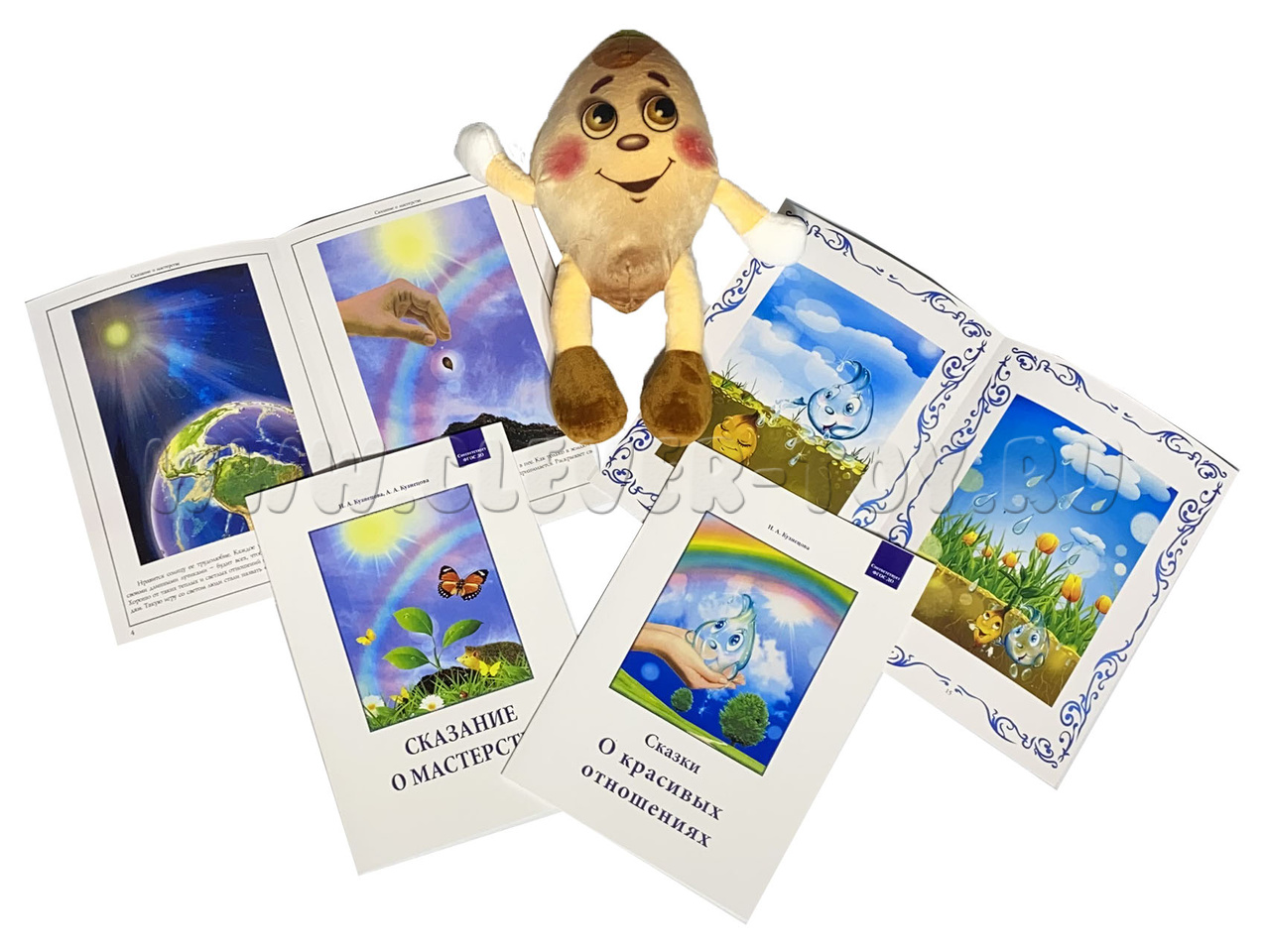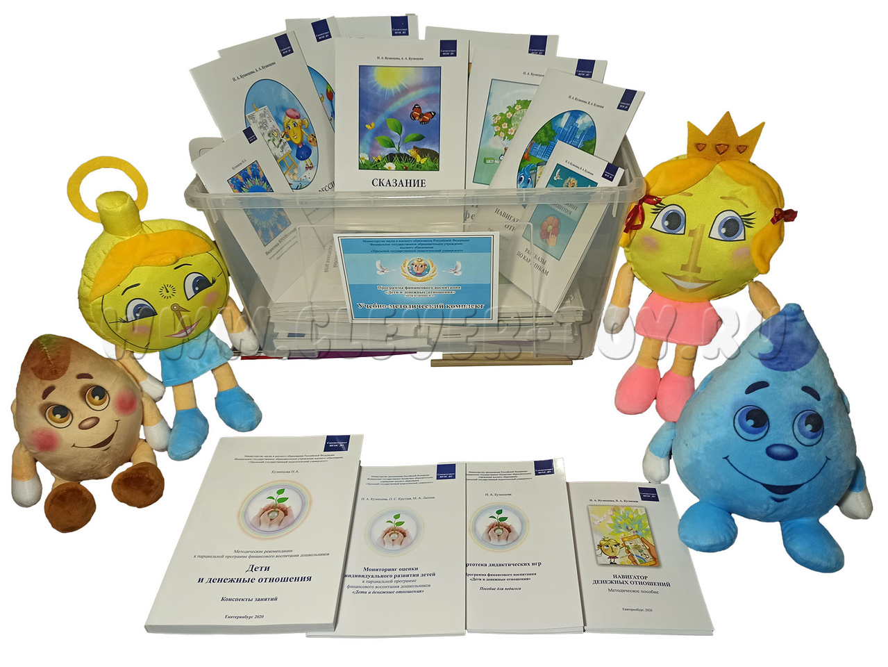 В составе комплекта предоставляются: готовые конспекты на 75 занятий; сказки с цветными иллюстрациями; обучающие раскраски с упражнениями; игры-упражнения; наглядно-дидактические материалы в виде панно; образовательные нейротренажеры; видео с образовательными спектаклями, занятиями, песочной анимацией; комплект для поощрения (вымпелы, декоративные растяжки); материал для оформления центра "Супермаркет "Копеечка" (тематические ростомеры, наклейки, демонстрационные панно, игры); мягкие игрушки с ключевыми героями программы (фея Секундочка, фея Копеечка, Мудрое Семя и Прозрачная Капелька).